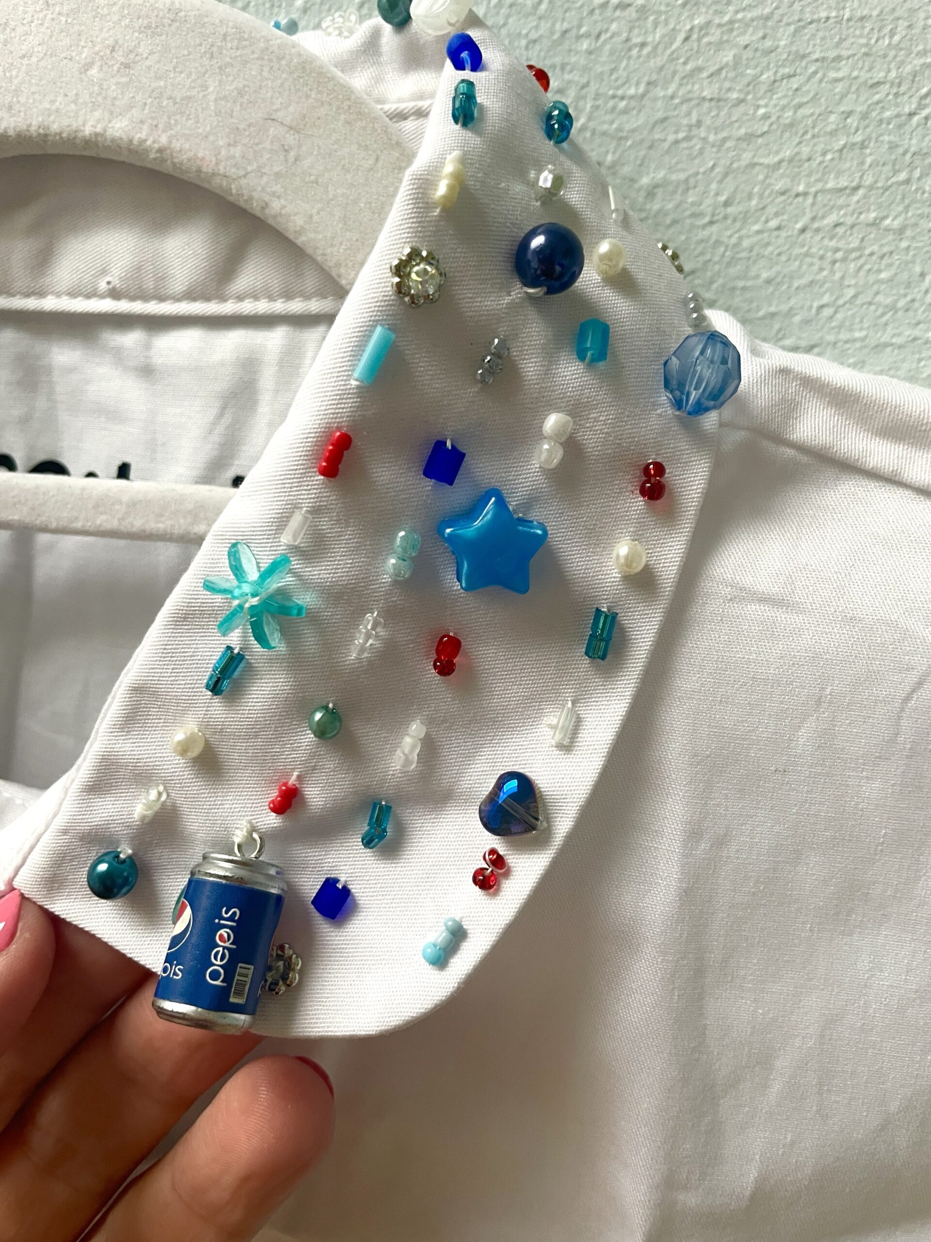 Fineste krave accessory med påsyede perler og pailletter for unikt udtryk.