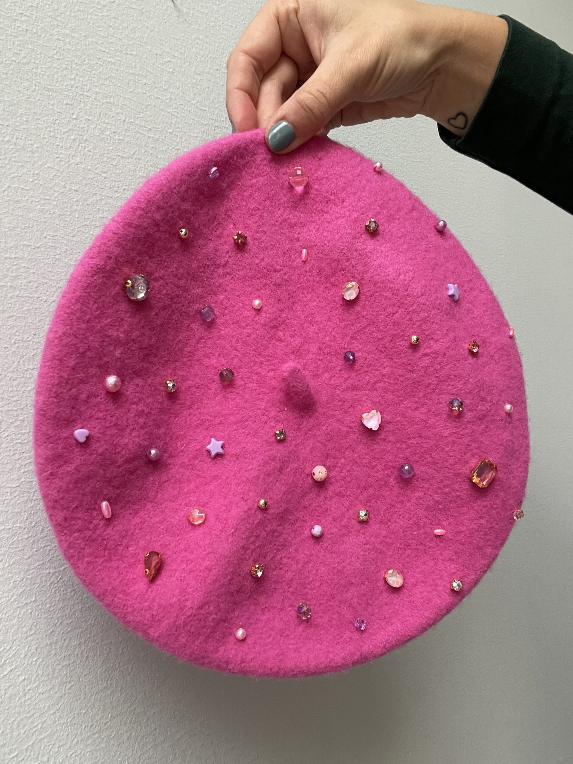 Redesignet uld baret med håndsyede perler og similisten i forskellige materialer. Det fineste prik over i’et til dit efterår og vinteroutfit.