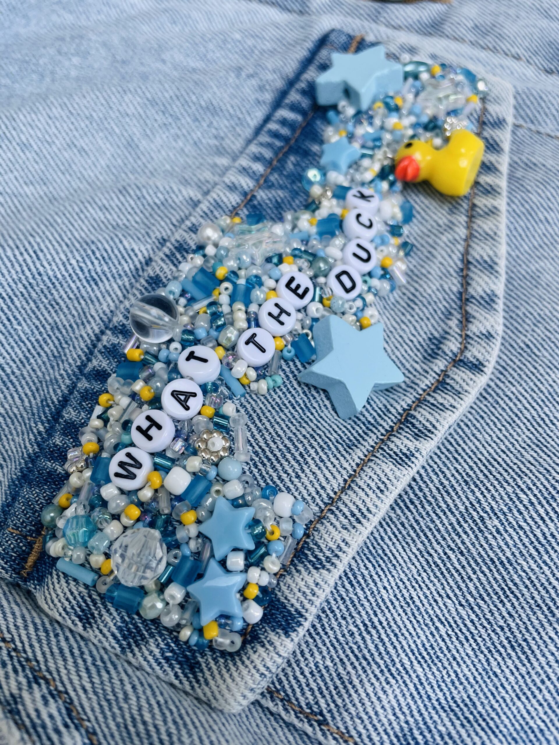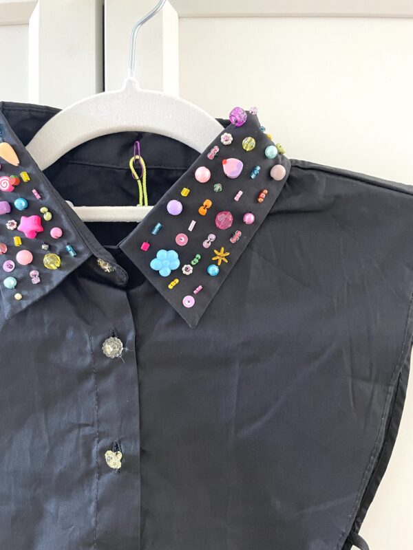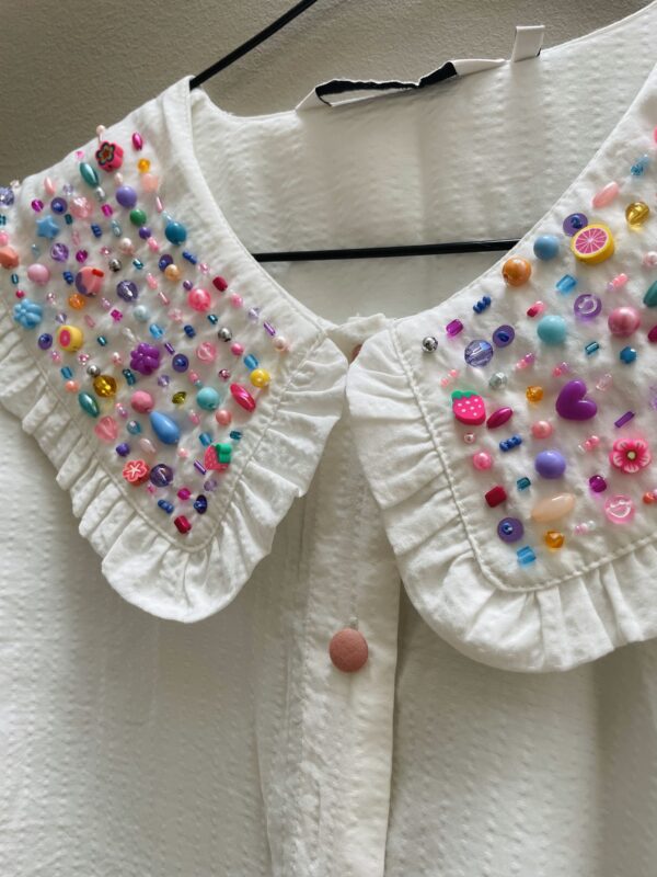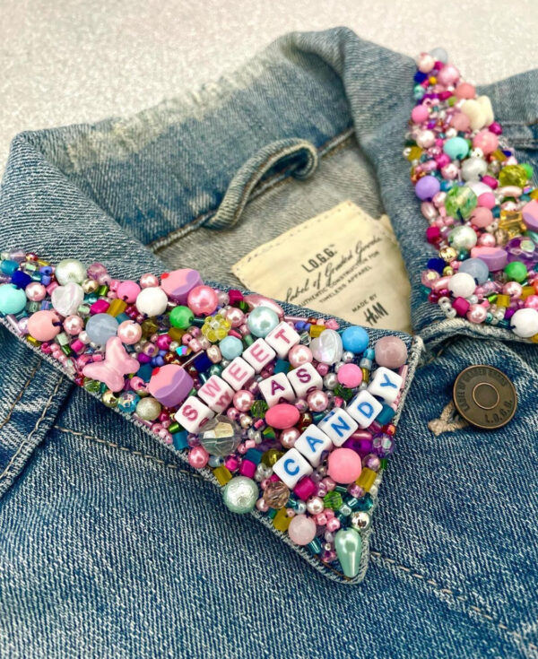 Jeg afholder forskellige workshops, hvor deltagerne syr perler på fx kraver og jakker. Nogle workshops vil det være på eget tøj som deltagerne medbringer, andre får man alle materialerne med i prisen.